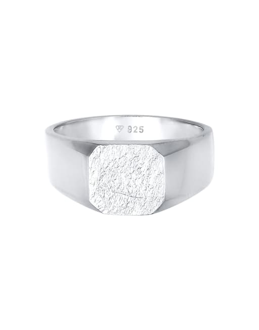 Kuzzoi - Chevalière basique en argent massif 925 avec détail carré texturé - Argenté mat