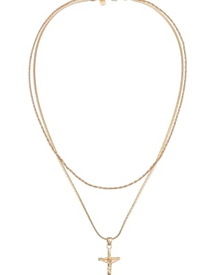 Kuzzoi - Colliers à superposer en argent massif 925 avec pendentif croix et maillons corde - Doré