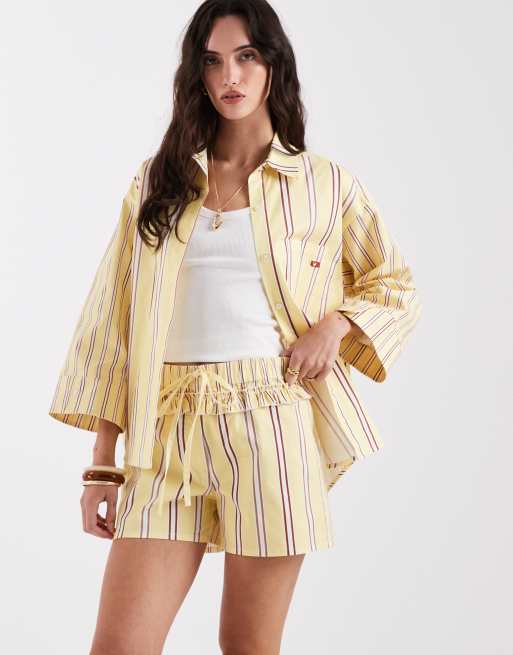 Laagam - Caois - Short d'ensemble style caleçon en popeline à rayures - Babeurre