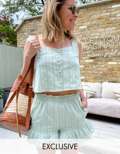 Labelrail x Collyer Twins - Crop top texturé boutonné sur le devant (pièce d’ensemble)