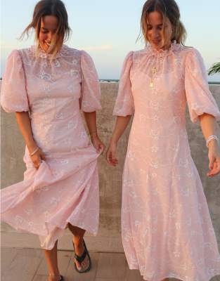 Labelrail x Collyer Twins - Robe longueur mollet à col montant et broderie transparente - Rose pâle