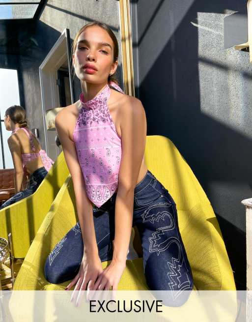 Labelrail x Hana Cross - Top foulard dos-nu avec lanières nouées à l'arrière et motif bandana