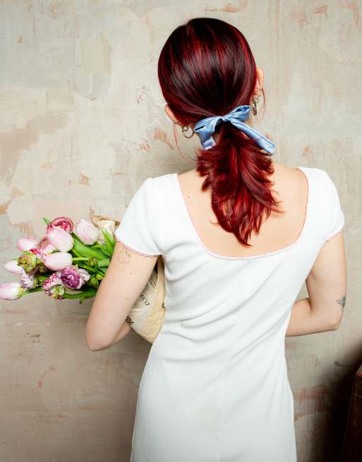 Labelrail x Lara Adkins - Élastique à cheveux en satin style nœud - Bleu