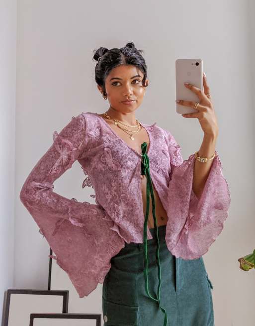 Labelrail x Pose and Repeat - Gilet noué à l'avant en maille à détails papillons - Rose poudré