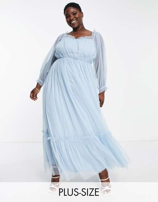 Lace & Beads Plus - Robe longue à manches longues - Bleu poudré