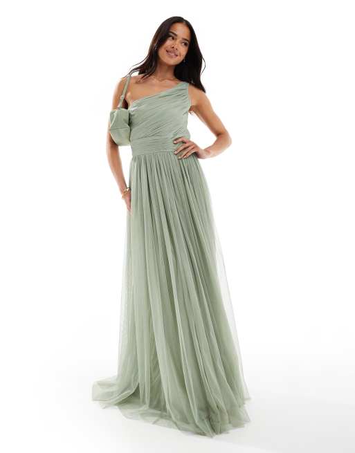 Lace & Beads - L'invitée - Robe longue et asymétrique - Vert sauge cendré