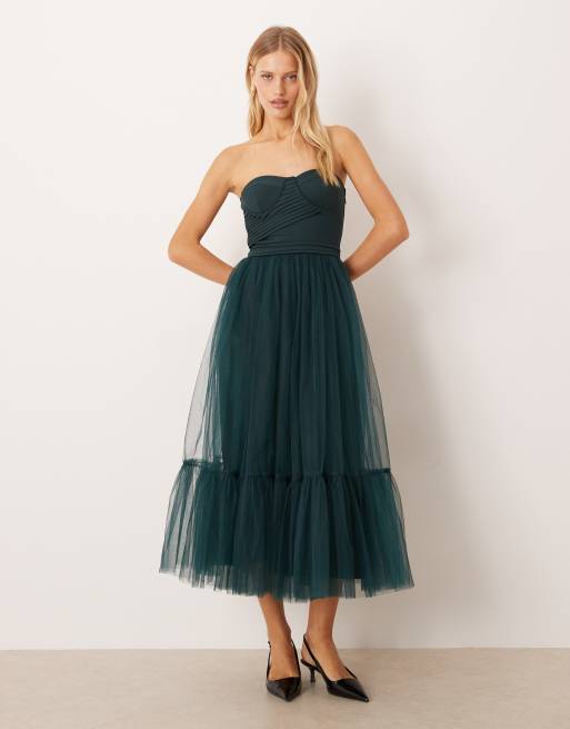 Lace & Beads - Robe bustier longueur mollet en tulle - Émeraude