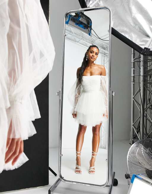 Lace & Beads - Robe courte avec manches en tulle - Blanc