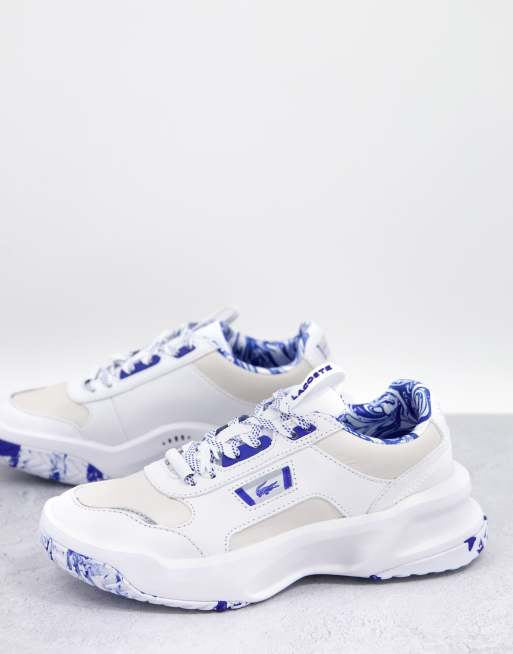 Lacoste - Ace Lift - Baskets chunky en cuir à imprimé marbré - Blanc et bleu