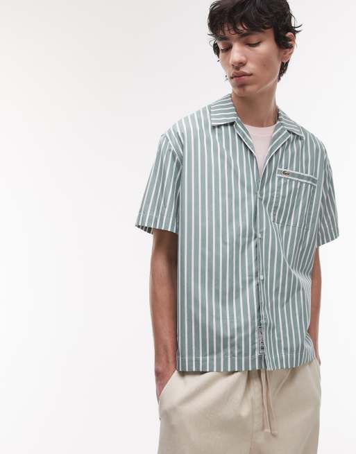 Lacoste - Chemise manches courtes avec col à revers et col à rayures - Blanc