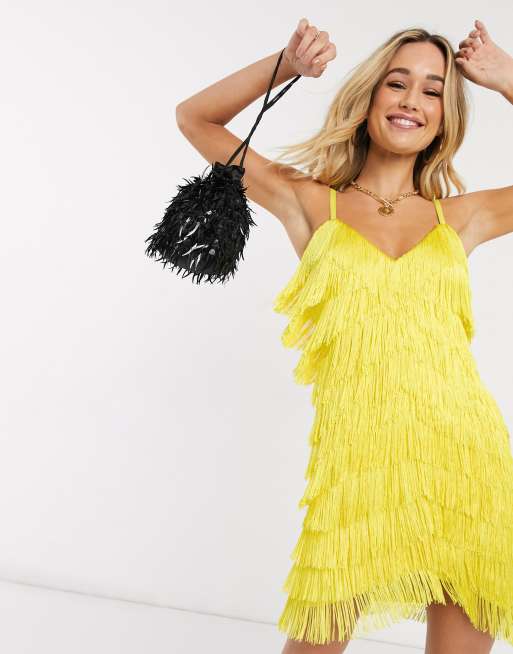 Lavish Alice - Robe courte à franges et chevrons - Jaune