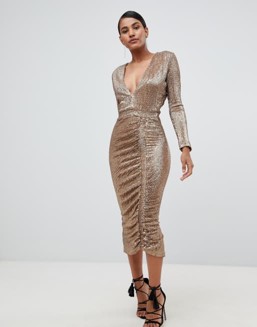 Lavish Alice - Robe mi-longue ornée de sequins - Doré