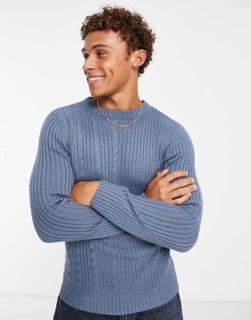 Le Breve - Pull en maille jacquard fendue - Bleu