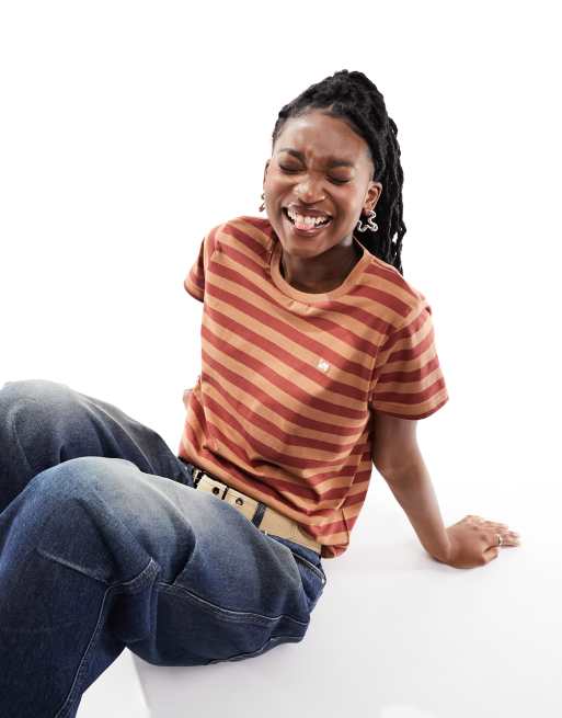Lee - T-shirt rayé à petit logo - Marron