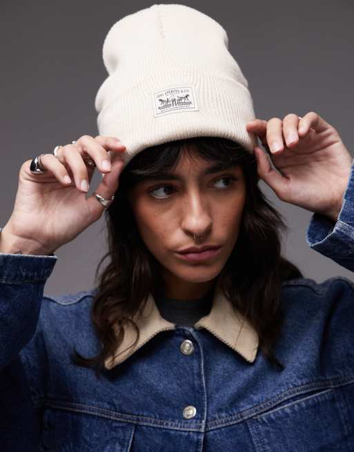 Levi's - Bonnet en maille côtelée à étiquette logo - Crème