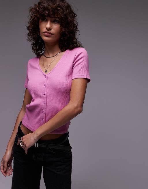 Levi's - Crop top boutonné côtelé - Rose