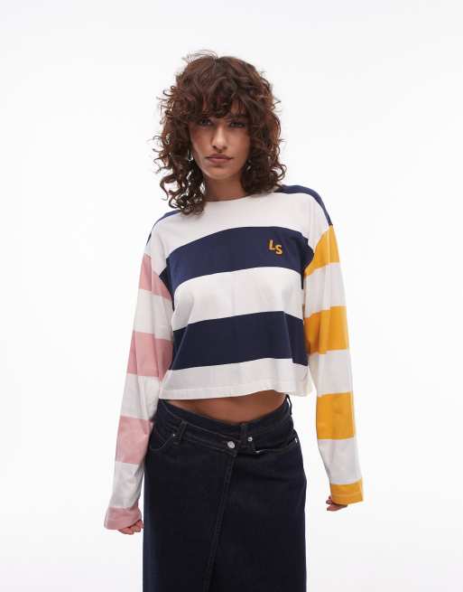Levi's - Crop top style maillot de rugby à rayures - Blanc