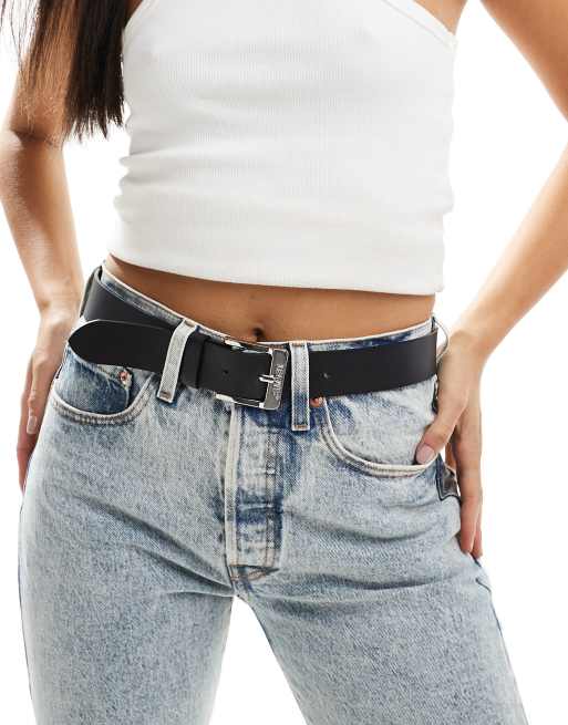 Levi's - Free - Ceinture en cuir avec boucle argentée - Noir