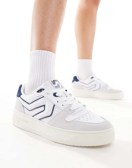Levi's - Glide L - Baskets à semelle chunky et empiècement griffé - Blanc/bleu marine