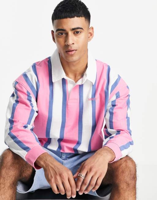 Levi's - Polo rayé style maillot de rugby avec petit logo - Rose