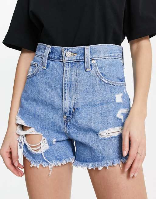 Levi's - Short mom à taille haute effet usé - Bleu délavé clair