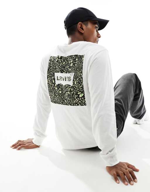 Levi's - T-shirt à manches longues avec petit logo centré et imprimé au dos - Blanc