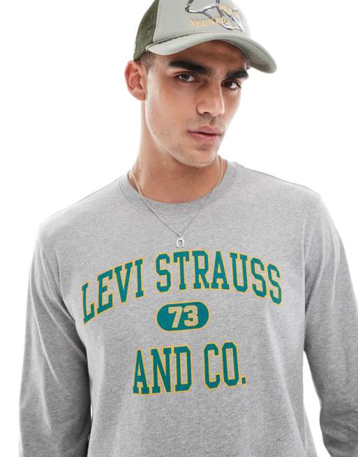 Levi's - T-shirt à manches longues coupe décontractée à logo style universitaire - Gris chiné