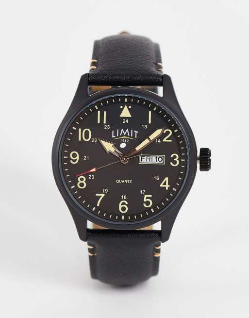 Limit - Montre en similicuir avec cadran indiquant la date - Noir