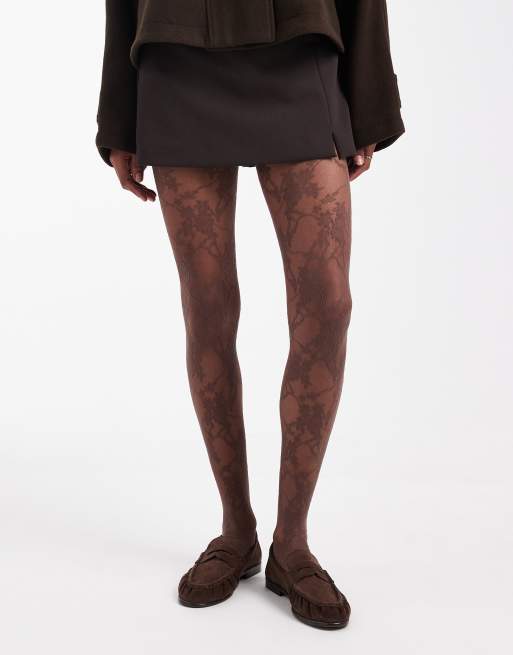 Lindex - Collants 30 deniers en dentelle fleurie - Marron