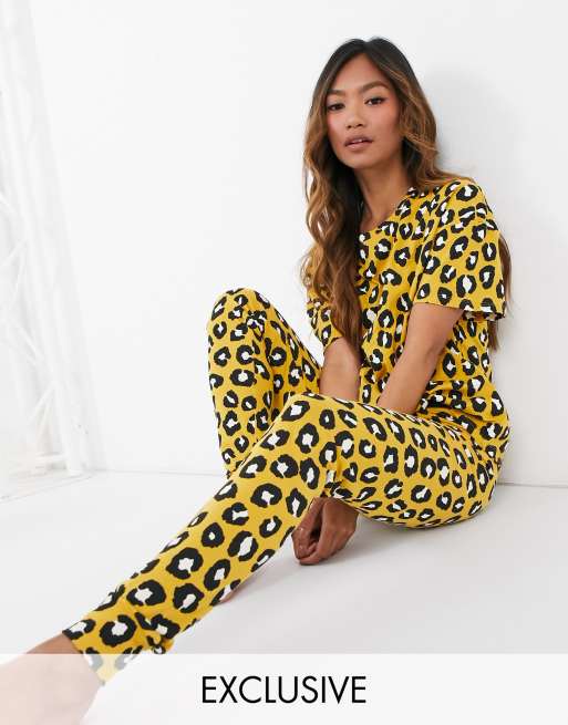 Lindex - Exclusivité - Ensemble t-shirt et legging à imprimé léopard en coton - Naturel - YELLOW