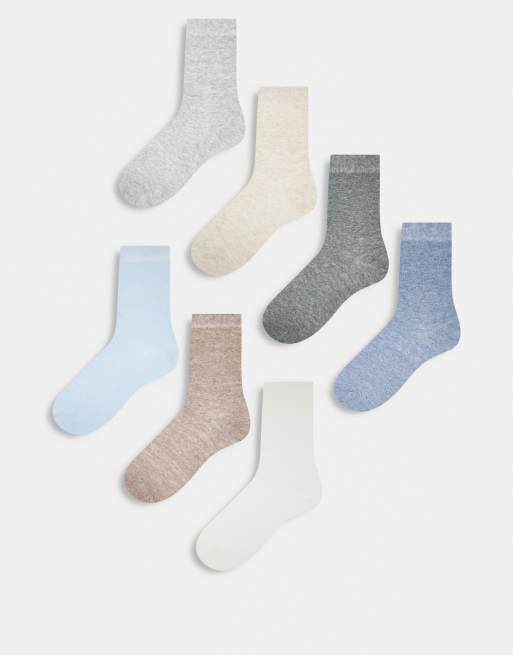 Lindex - Lot de 7 paires de socquettes - Bleu et neutre