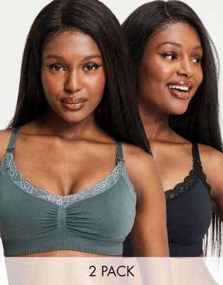 Lindex - Mom - Lot de 2 soutiens-gorge d'allaitement sans coutures - Noir et vert cendré