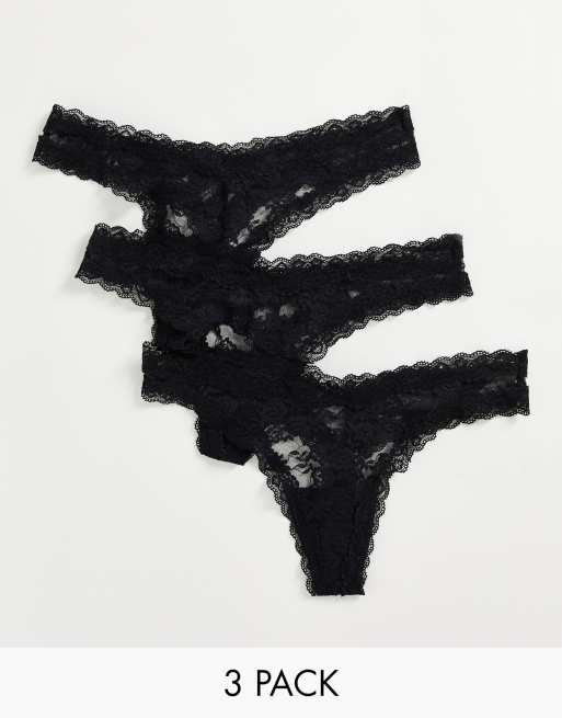 Lindex - So U Dana - Exclusivité - Lot de 3 strings en dentelle - Noir