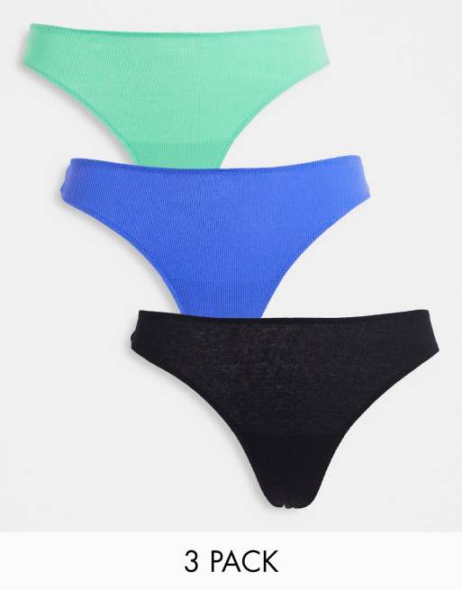 Lindex - SoU Nova - Lot de 3 strings côtelés en coton - Noir, bleu et vert - MULTI