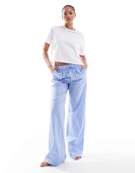 Lindex Tall - Pantalon en coton avec cordon de serrage à la taille - Bleu rayé