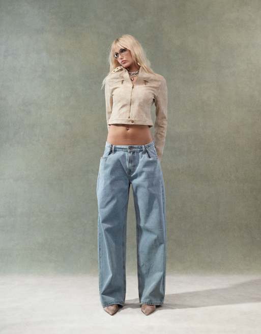Lioness - Jean large à taille basse réglable - Bleu clair délavé