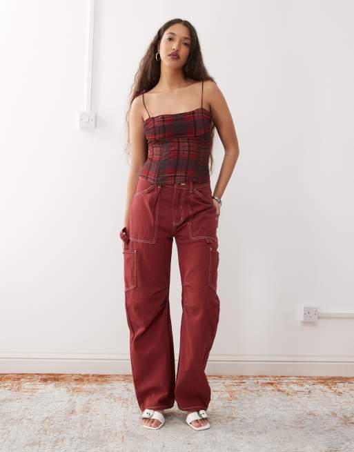 Lioness - Miami Vice - Jean d'ensemble ample avec taille basse et poches multiples - Bordeaux