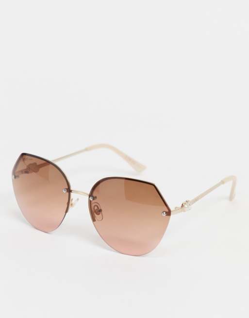 Lipsy - Lunettes de soleil hexagonales oversize ornées de perles