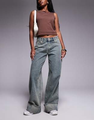 Liquor N Poker - Jean baggy à taille mi-haute cintrée avec ourlets à revers - Bleu délavé