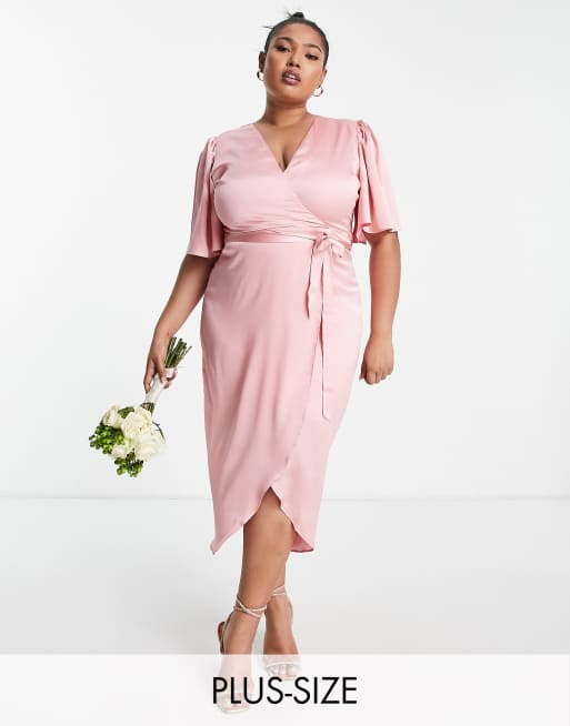 Liquorish Plus - L'invitée - Robe cache-cœur longueur mollet en satin - Rose pastel