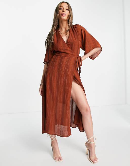 Liquorish - Robe portefeuille mi-longue - Marron chocolat