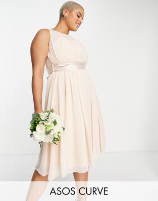 Little Mistress Plus - Robe patineuse de demoiselle d'honneur mi-longue - Blush