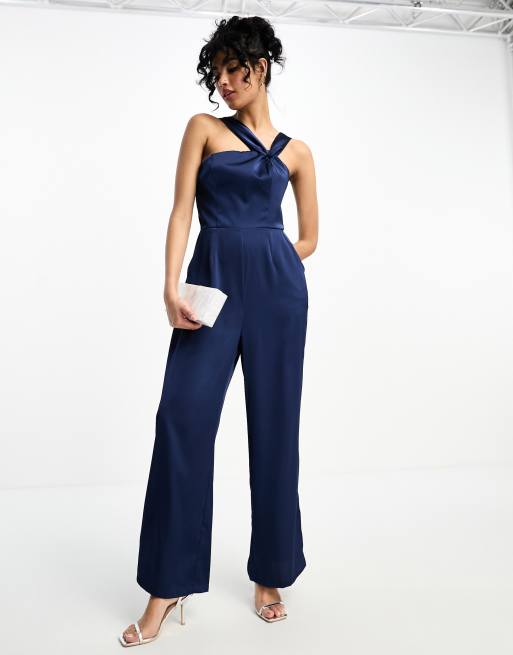 Little Mistress - Combinaison asymétrique en satin - Bleu marine