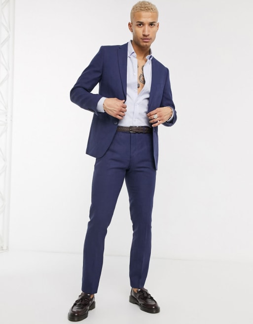 Lockstock - Costume en lin coupe slim - Bleu marine