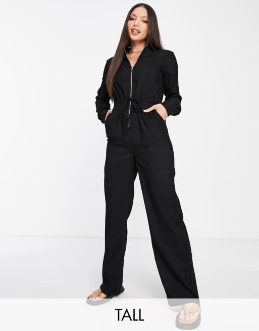 Lola May Tall - Combinaison en velours côtelé nouée à la taille - Noir