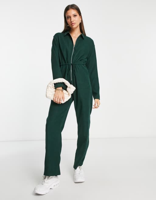 Lola May - Combinaison style bleu de travail en velours côtelé avec fermeture éclair sur le devant - Vert forêt