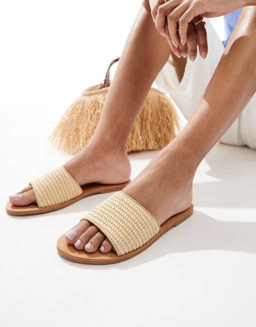 London Rebel - Sandales plates à bride - Raphia naturel