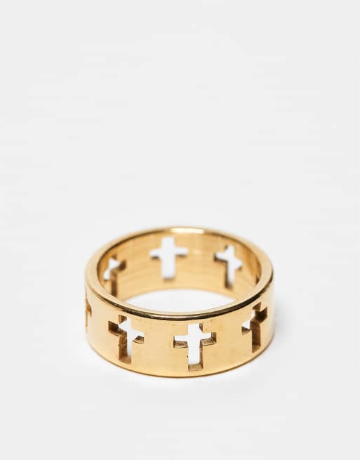 Lost Souls - Bague à détails croix en plaqué or 18 carats