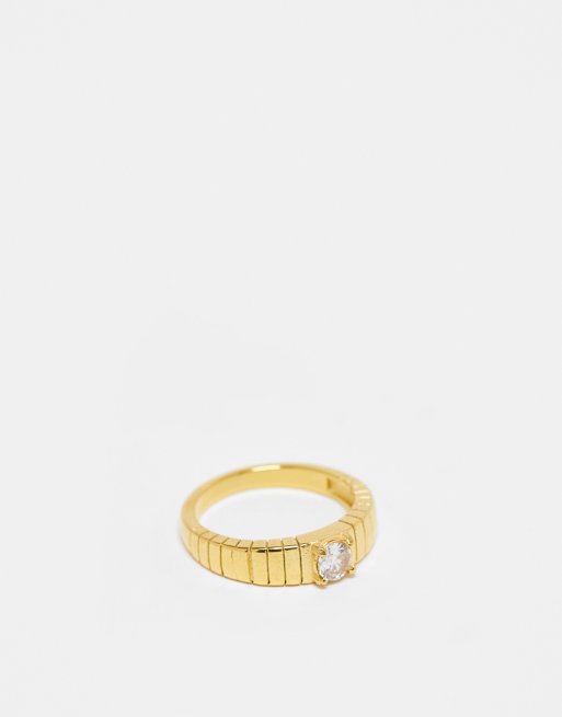 Lost Souls - Bague gravée en acier inoxydable avec cristal - Doré