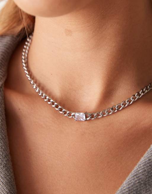 Lost Souls - Collier chaîne en acier inoxydable à maillons épais avec détail effet cristal - Argenté